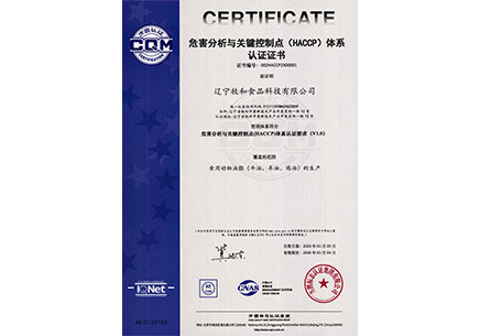 危害分析與關(guān)鍵控制點(diǎn)體系認(rèn)證證書(shū)