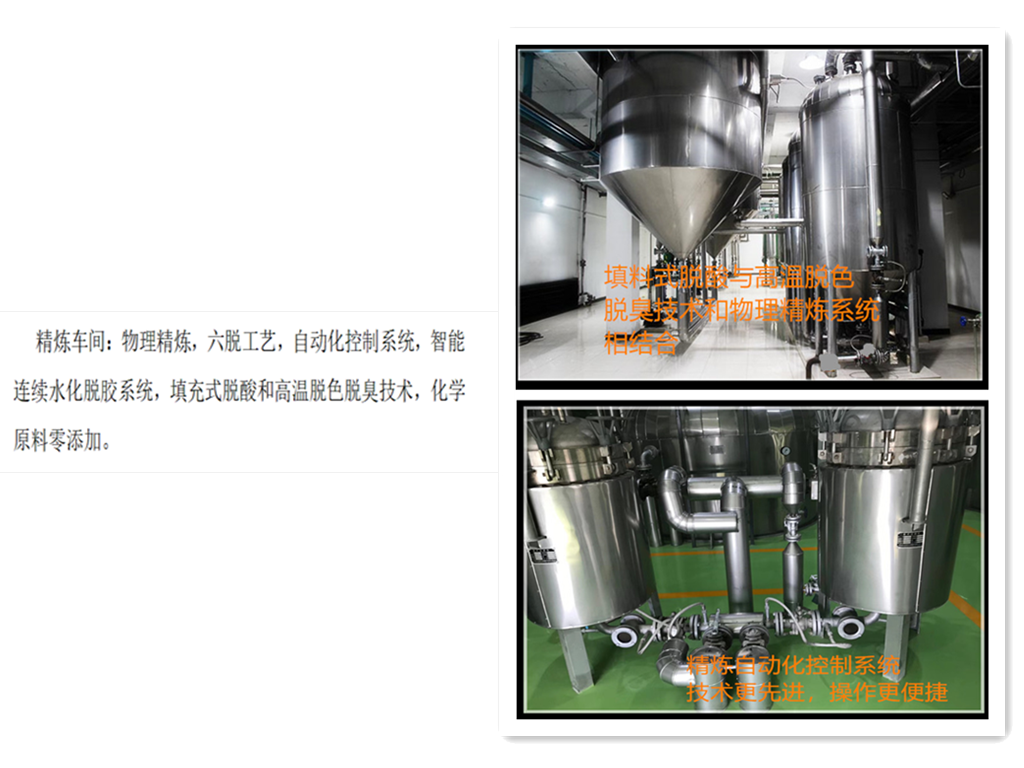 公司打造全產(chǎn)業(yè)鏈經(jīng)營模式,1998年創(chuàng)建沈陽新光屠宰廠、2014年創(chuàng)建沈陽福和牛業(yè)有限公司、2018年創(chuàng)建遼寧牧和食品科技有限公司 (畜牧養(yǎng)殖、屠宰分割、油脂加工三位一體),確保食品安全。原料除公司自產(chǎn)外,全部來自于國內(nèi)四大牧場。綠色放養(yǎng),吊掛式宰殺工藝,牛脂新鮮無血漬,采用-18℃冷鏈運輸,保證原料新鮮。 工藝采取低溫真空熔煉,全程管道密閉輸送,安全無污染、不氧化,保留原始脂肪香味。超微過濾,無雜質(zhì)。物理精煉脫雜、 脫膠、脫磷、脫色、脫酸、脫臭,全智能控制,品質(zhì)更穩(wěn)定。油質(zhì)清澈透明、無添加、零污染,急速超冷多級捏合罐裝,脂香濃郁、口感細膩。炒料不渾湯、不起泡、回味悠長、湯清色亮。